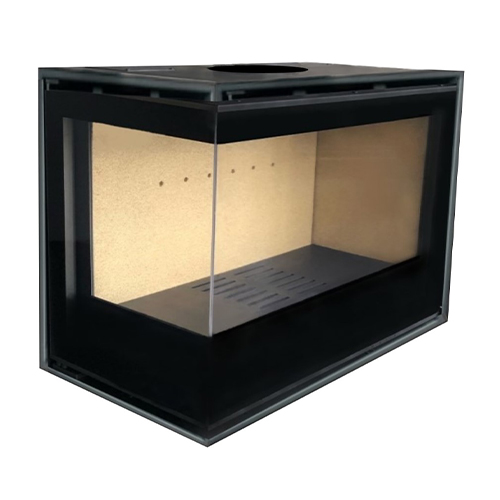 Insert à Bois Eco Box Panoramic 80×60 avec façade et côté en verre, le côté peut être à gauche ou à droite. Avec ventilation forcée, encastrée.